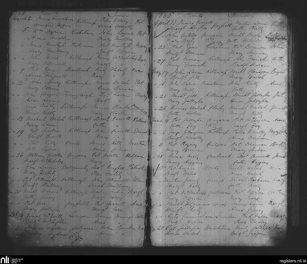 Killedan; County of Mayo; Diocese of Achonry. Baptisms, Mar. 1865 to June 1865