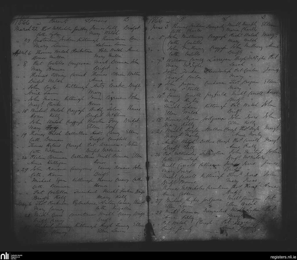 Killedan; County of Mayo; Diocese of Achonry. Baptisms, Mar. 1866 to June 1866