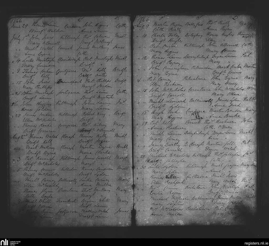 Killedan; County of Mayo; Diocese of Achonry. Baptisms, June 1866 to Aug. 1866