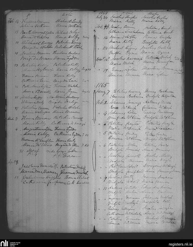 Killedan; County of Mayo; Diocese of Achonry. Marriages, Feb. 1864 to Feb. 1865