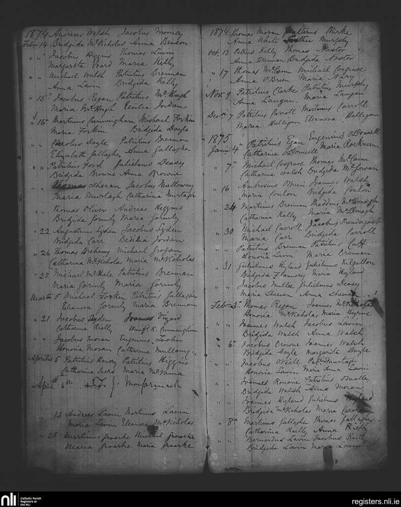 Killedan; County of Mayo; Diocese of Achonry. Marriages, Feb. 1874 to Feb. 1875