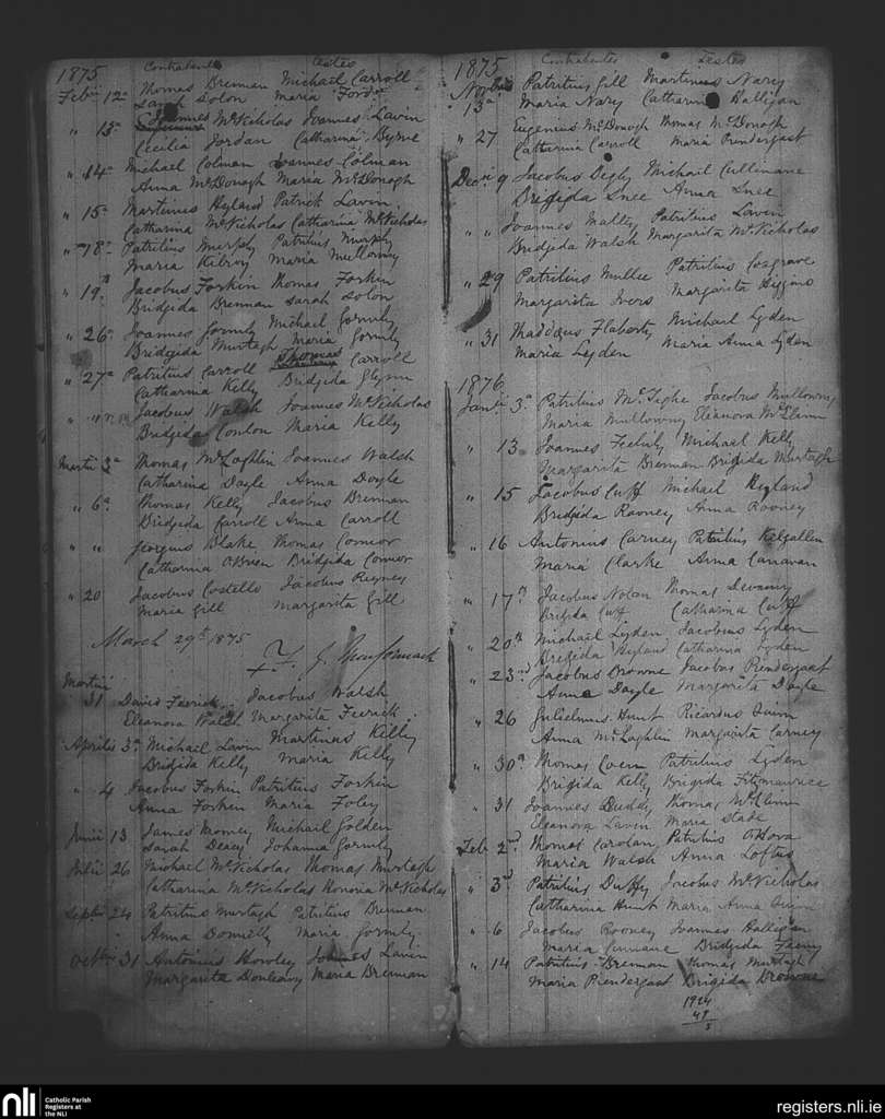 Killedan; County of Mayo; Diocese of Achonry. Marriages, Feb. 1875 to Feb. 1876