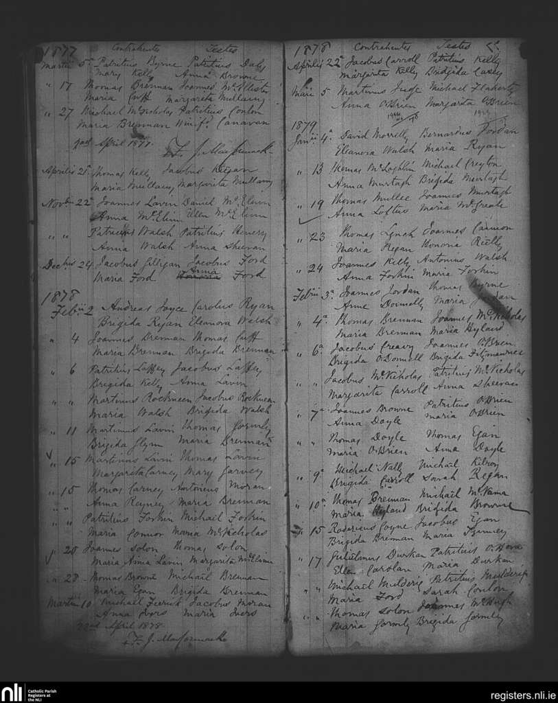 Killedan; County of Mayo; Diocese of Achonry. Marriages, Mar. 1877 to Feb. 1879