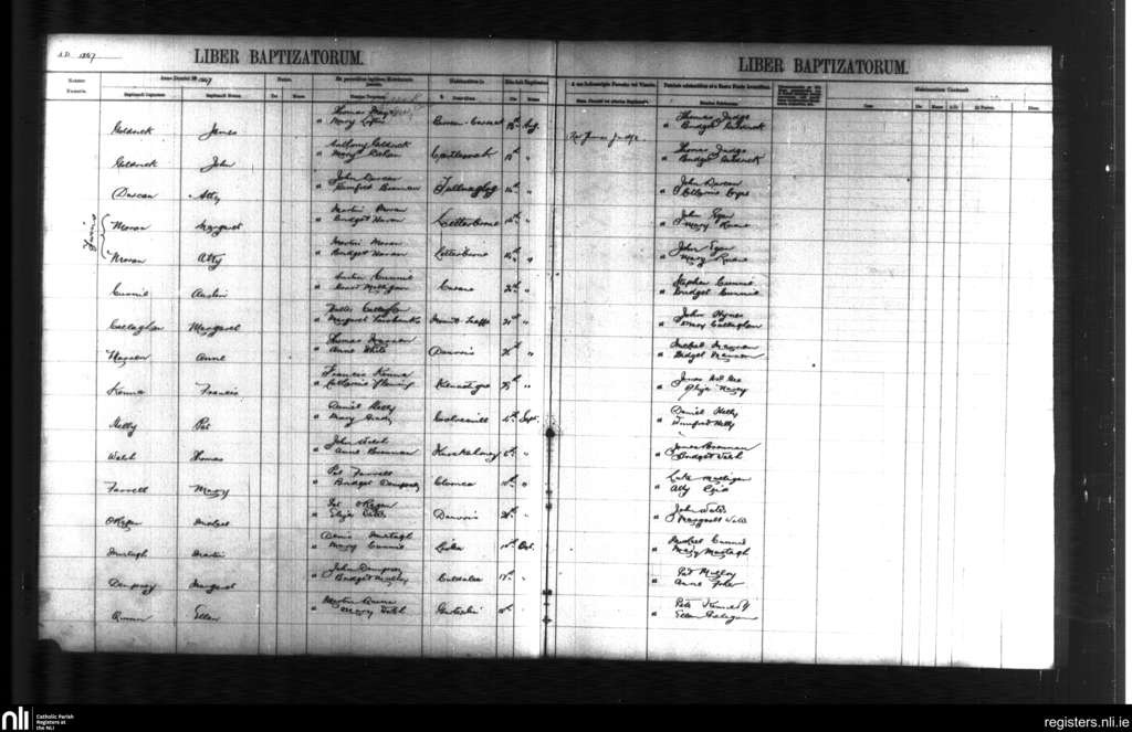 Kilmactigue; County of Sligo; Diocese of Achonry. Baptisms, Aug. 1847 to Oct. 1847