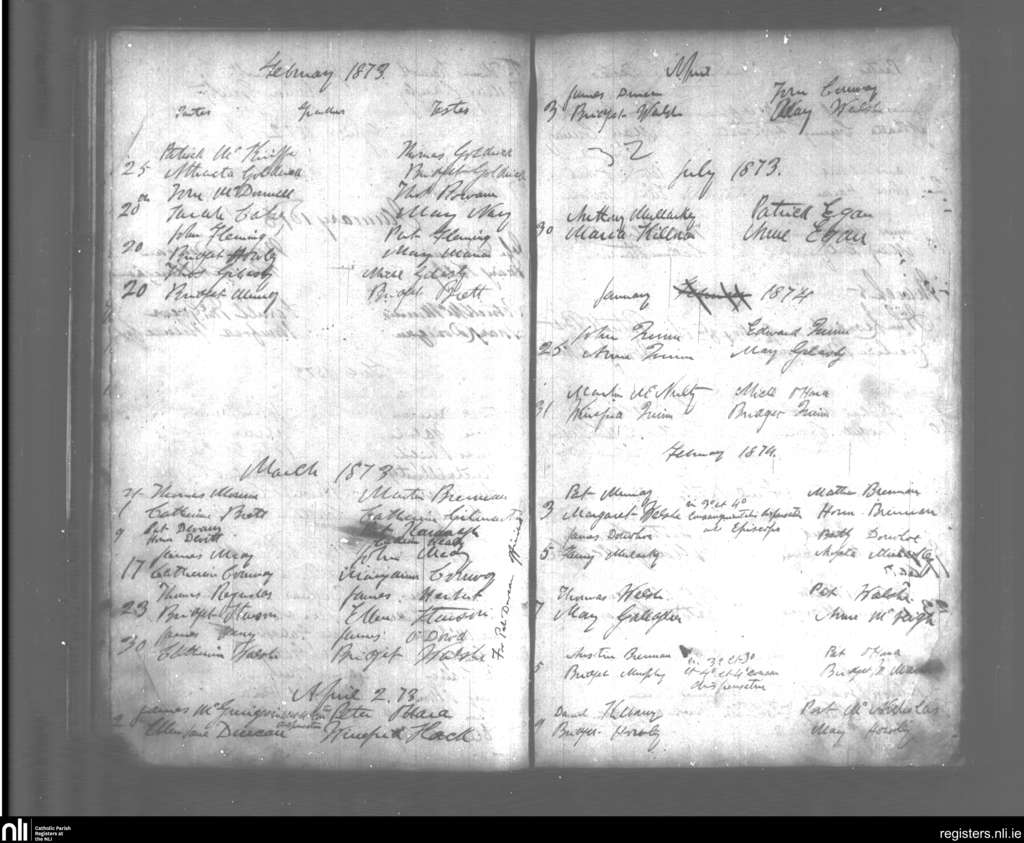 Kilmactigue; County of Sligo; Diocese of Achonry. Marriages, Feb. 1873 to Feb. 1874