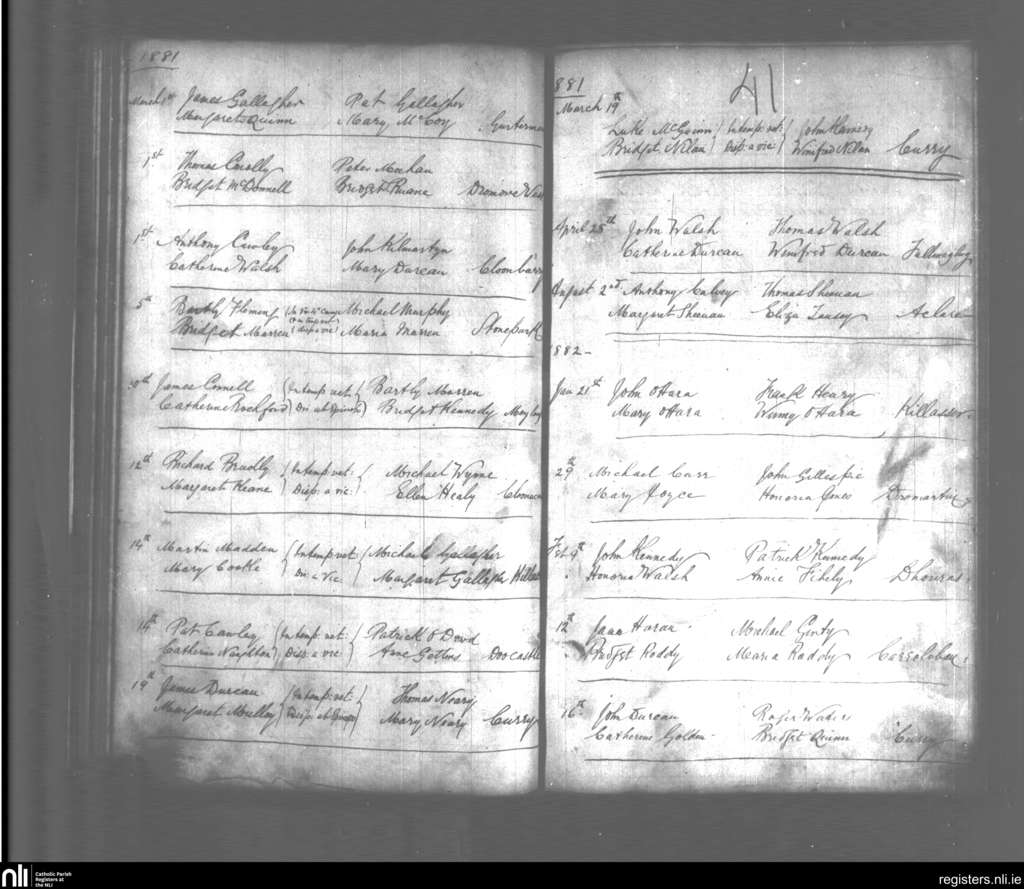 Kilmactigue; County of Sligo; Diocese of Achonry. Marriages, Mar. 1881 to Feb. 1882