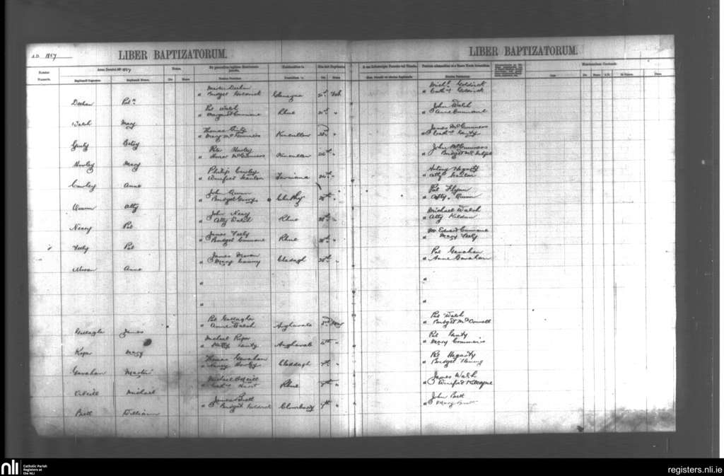 Kilmactigue; County of Sligo; Diocese of Achonry. Baptisms, Feb. 1857 to Mar. 1857