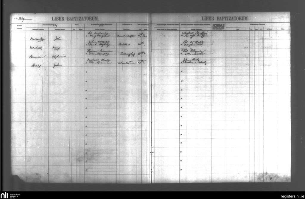 Kilmactigue; County of Sligo; Diocese of Achonry. Baptisms, Dec. 1857