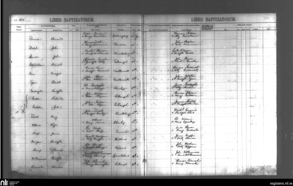 Kilmactigue; County of Sligo; Diocese of Achonry. Baptisms, Jan. 1858