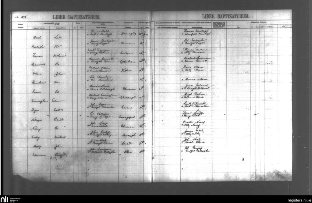 Kilmactigue; County of Sligo; Diocese of Achonry. Baptisms, Jan. 1858