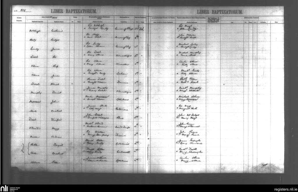 Kilmactigue; County of Sligo; Diocese of Achonry. Baptisms, Feb. 1858