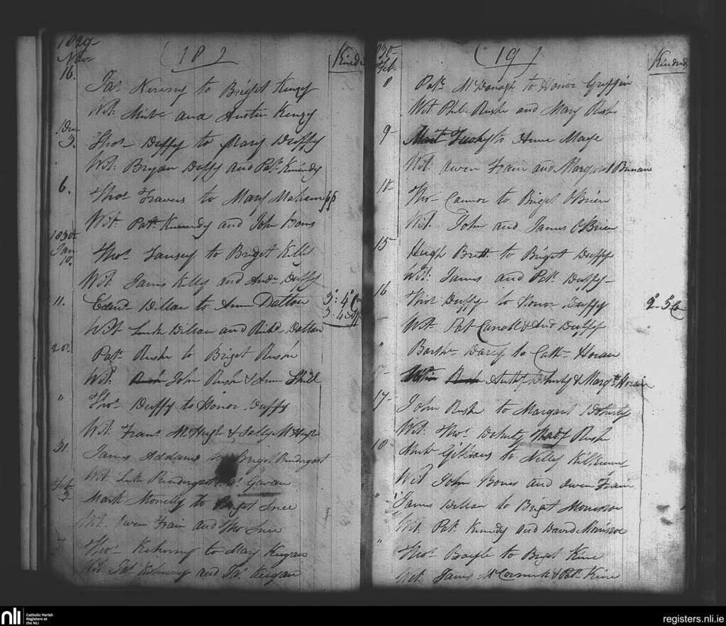 Kilmovee; County of Mayo; Diocese of Achonry. Marriages, Nov. 1829 to Feb. 1830