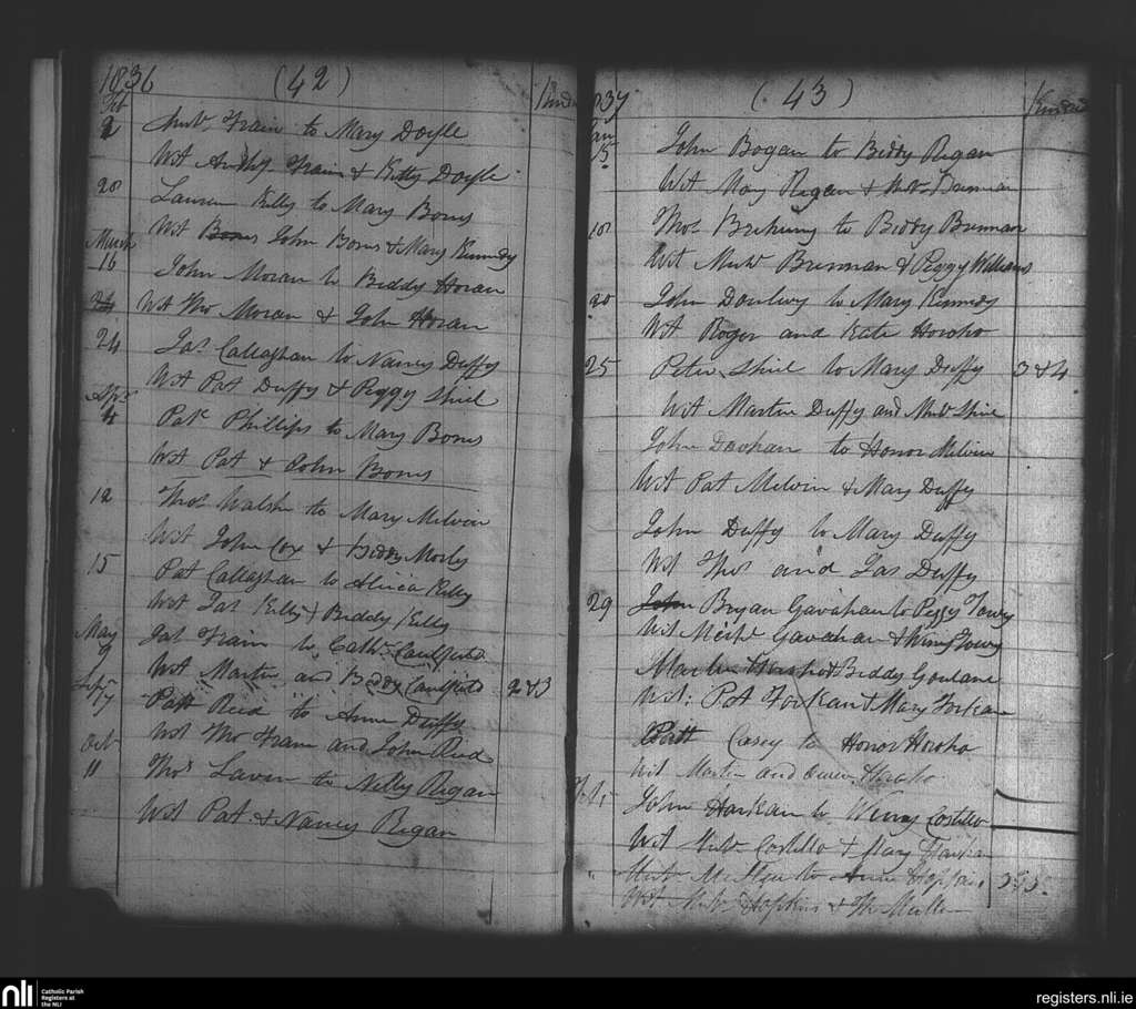 Kilmovee; County of Mayo; Diocese of Achonry. Marriages, Feb. 1836 to Feb. 1837