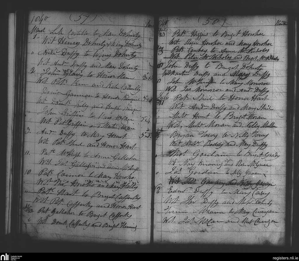 Kilmovee; County of Mayo; Diocese of Achonry. Marriages, Mar. 1840 to Nov. 1840