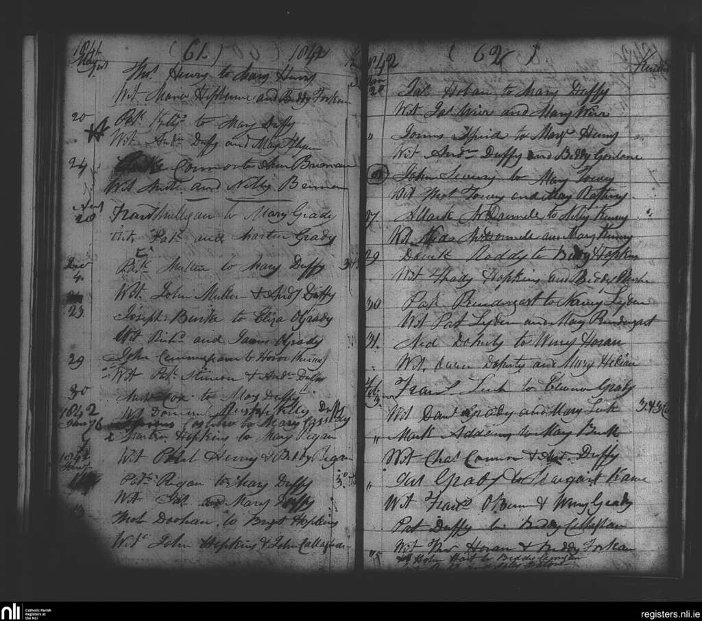 Kilmovee; County of Mayo; Diocese of Achonry. Marriages, May 1841 to Feb. 1842
