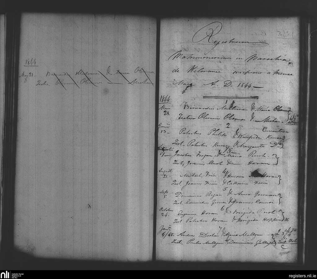 Kilmovee; County of Mayo; Diocese of Achonry. Marriages, May 1844 to Jan. 1845