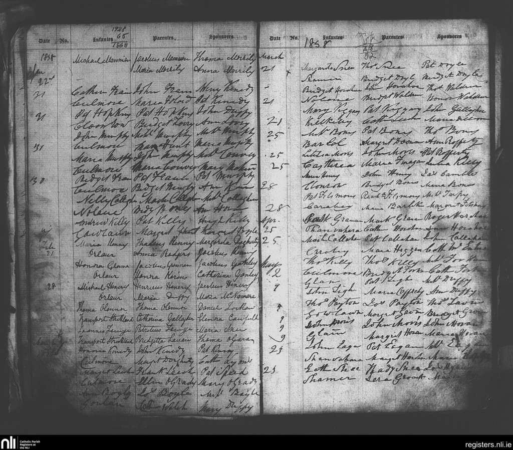 Kilmovee; County of Mayo; Diocese of Achonry. Baptisms, Jan. 1858 to May 1858
