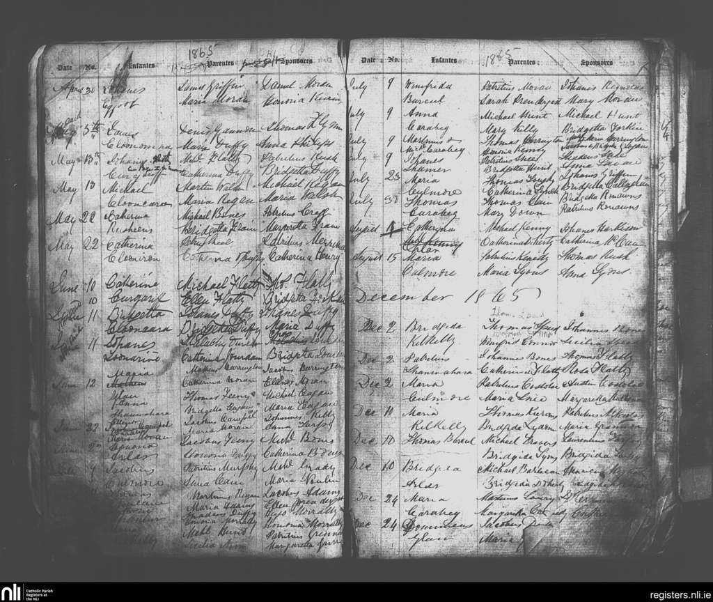 Kilmovee; County of Mayo; Diocese of Achonry. Baptisms, Apr. 1865 to Dec. 1865