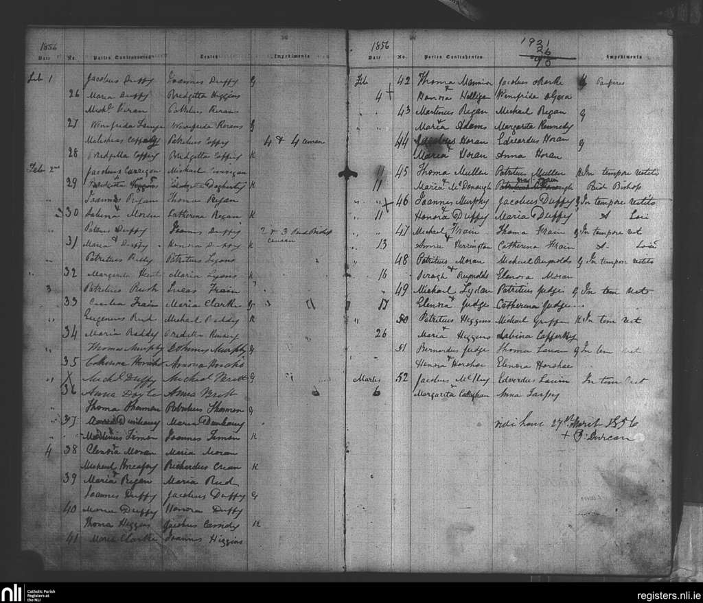 Kilmovee; County of Mayo; Diocese of Achonry. Marriages, Feb. 1856 to Mar. 1856