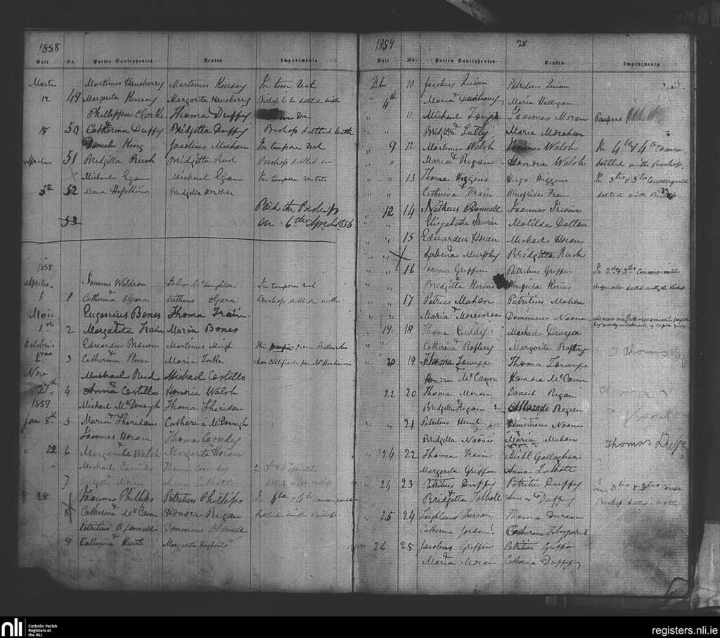 Kilmovee; County of Mayo; Diocese of Achonry. Marriages, Mar. 1858 to Feb. 1859