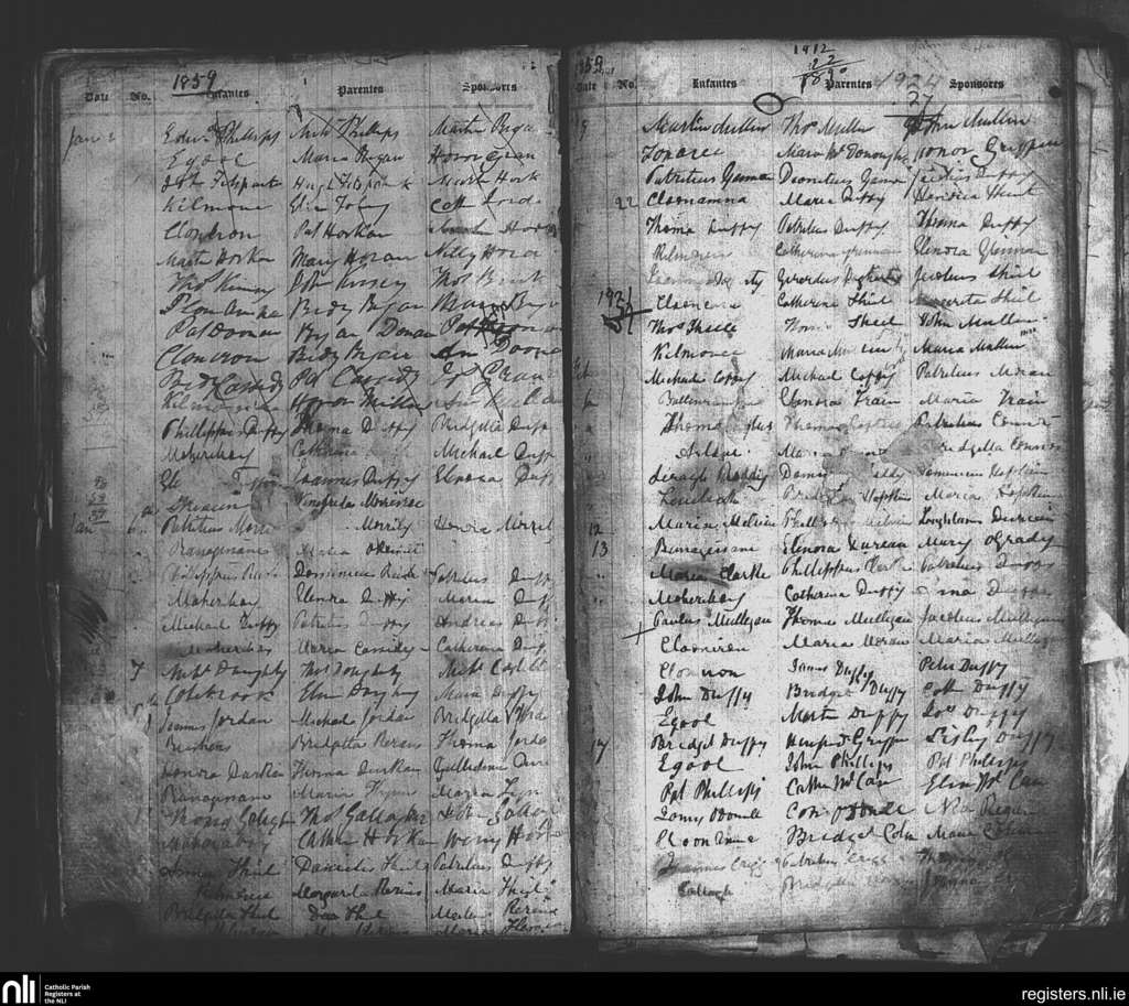 Kilmovee; County of Mayo; Diocese of Achonry. Baptisms, Jan. 1859 to Feb. 1859