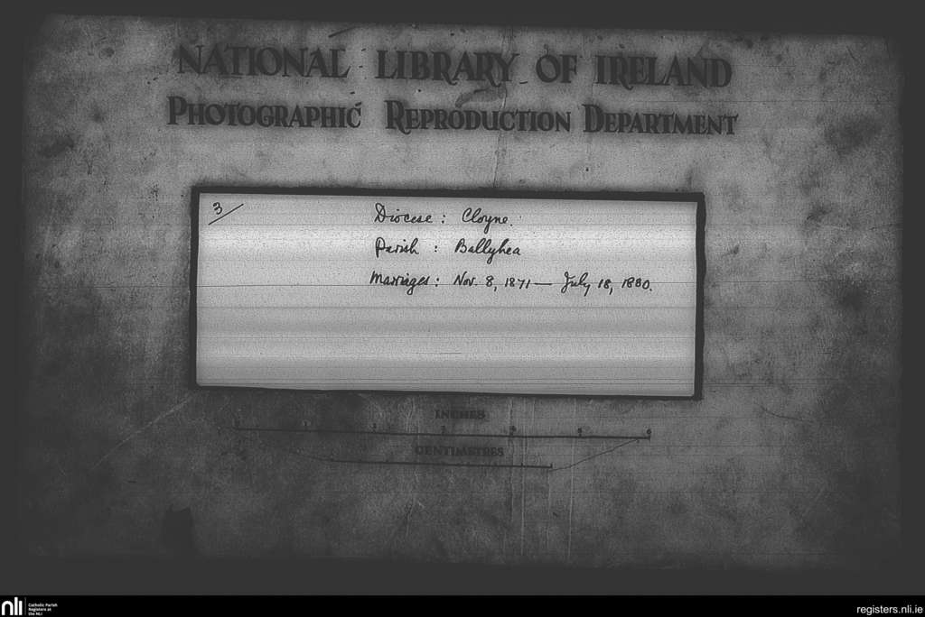 Ballyhea; County of Cork; Diocese of Cloyne. Marriages