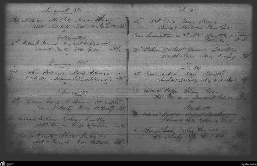 Ballyhea; County of Cork; Diocese of Cloyne. Marriages, Aug. 1876 to Mar. 1878