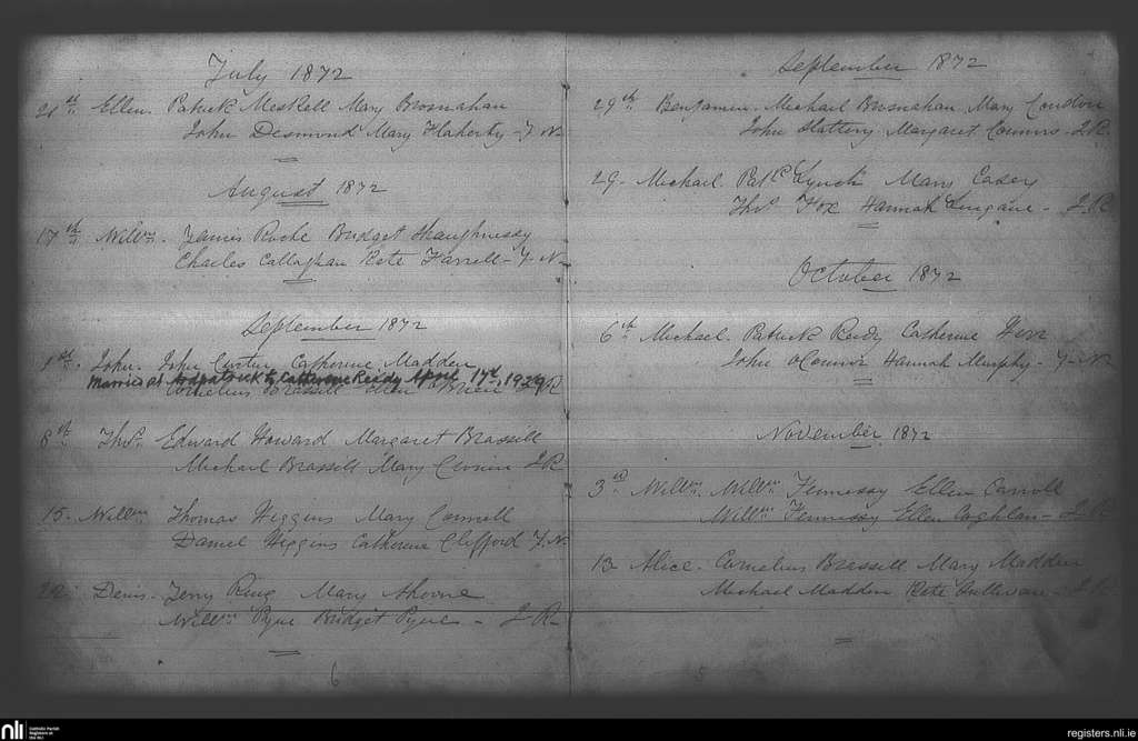 Ballyhea; County of Cork; Diocese of Cloyne. Baptisms, Marriages, July 1872 to Apr. 1929