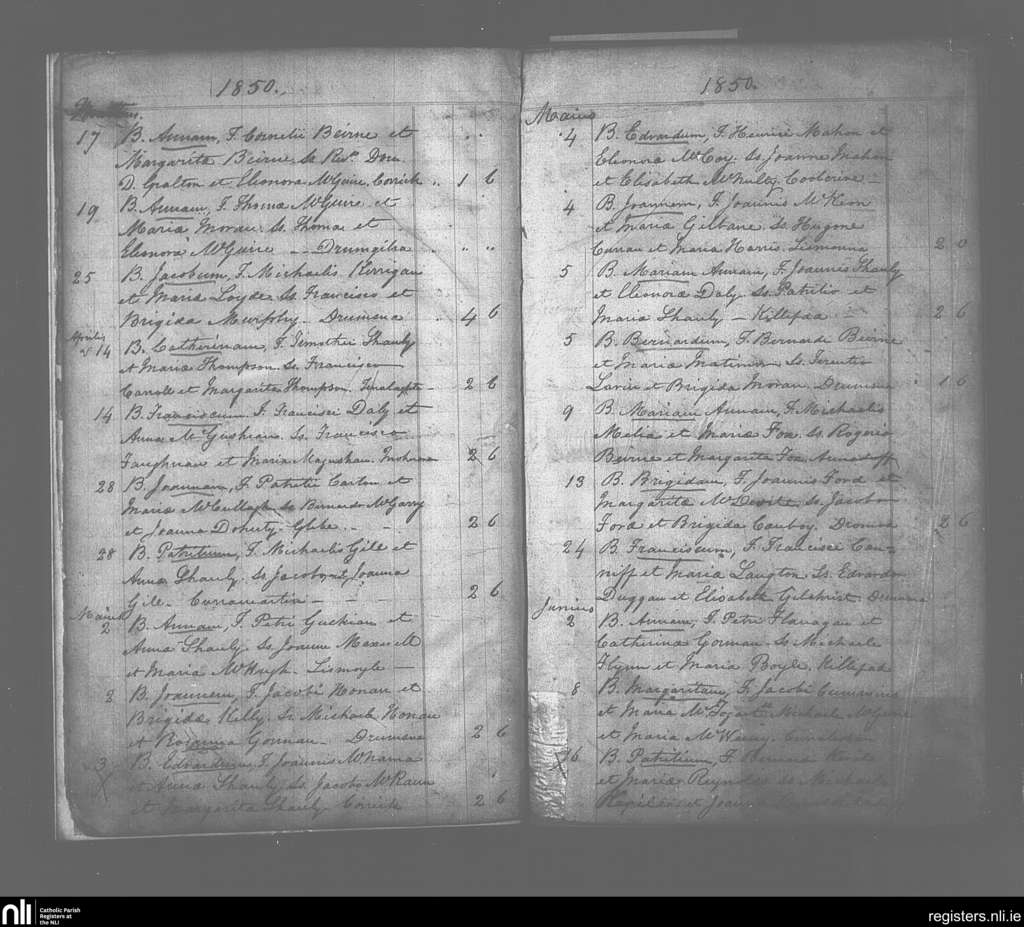 Annaduff; County of Leitrim; Diocese of Ardagh. Baptisms, Mar. 1850 to June 1850