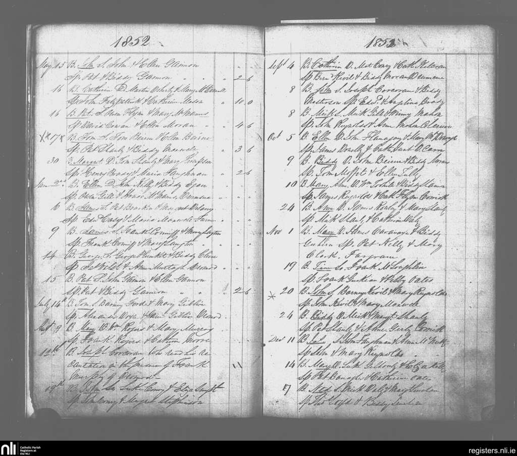 Annaduff; County of Leitrim; Diocese of Ardagh. Baptisms, May 1852 to Dec. 1852