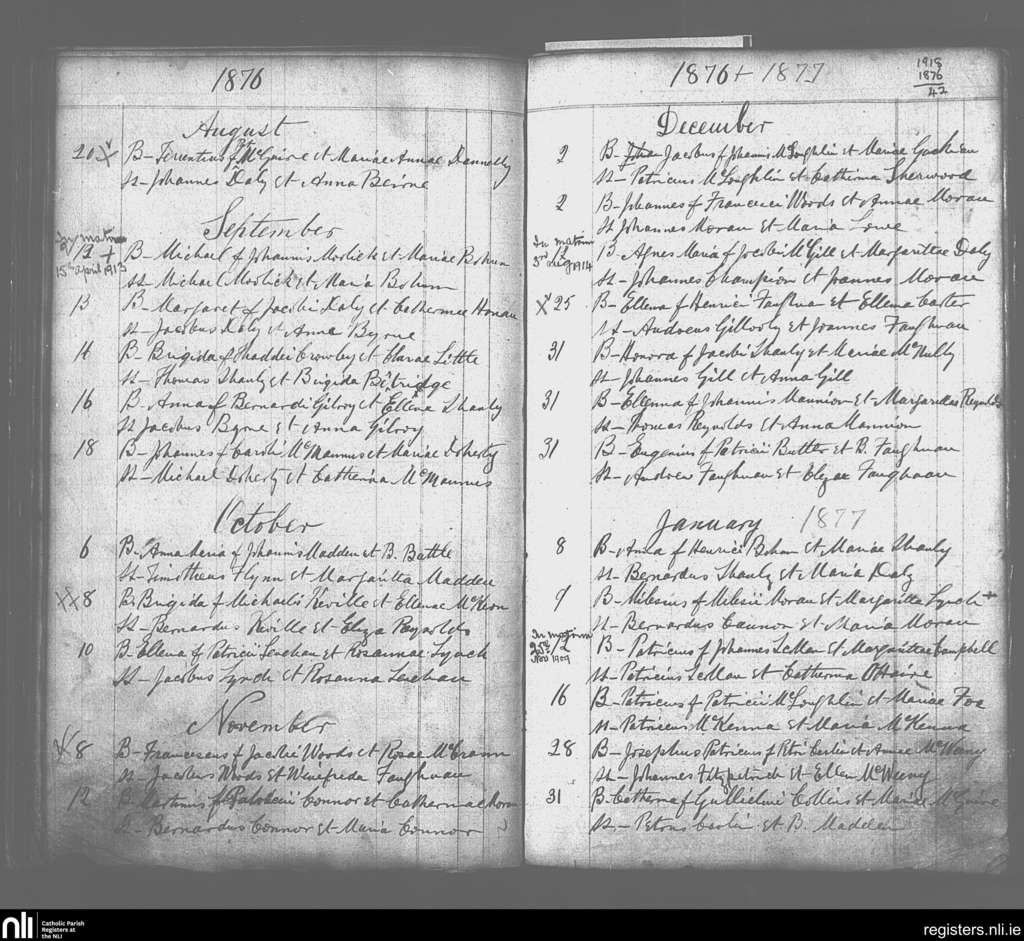 Annaduff; County of Leitrim; Diocese of Ardagh. Baptisms, Aug. 1876 to Jan. 1877