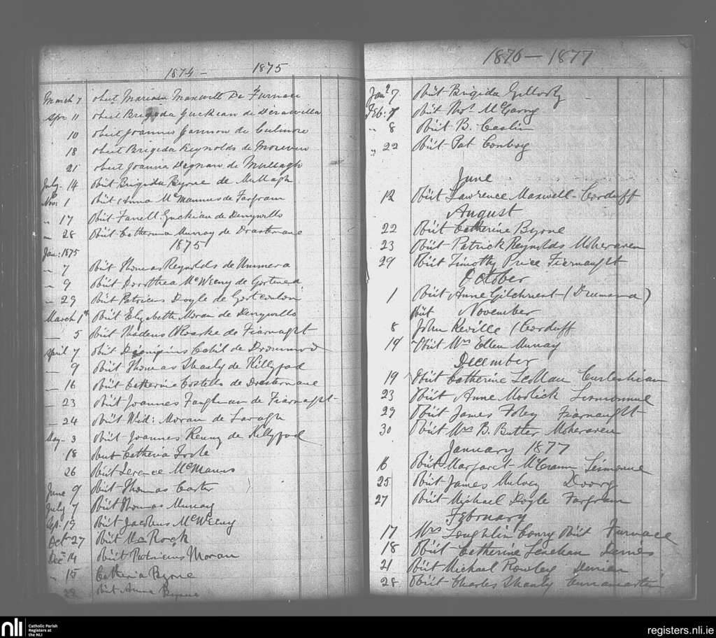 Annaduff; County of Leitrim; Diocese of Ardagh. Deaths, Mar. 1874 to Feb. 1877