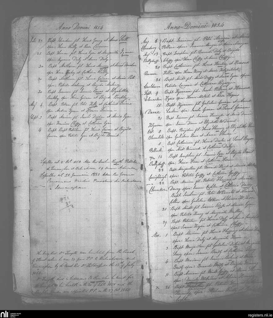 Ballinahown; County of Westmeath, Offaly; Diocese of Ardagh. Baptisms, July 1854 to Nov. 1854