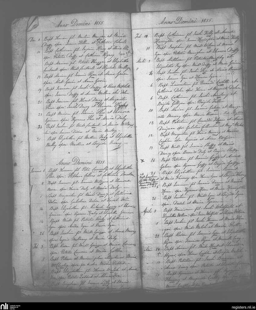 Ballinahown; County of Westmeath, Offaly; Diocese of Ardagh. Baptisms, Dec. 1854 to May 1855
