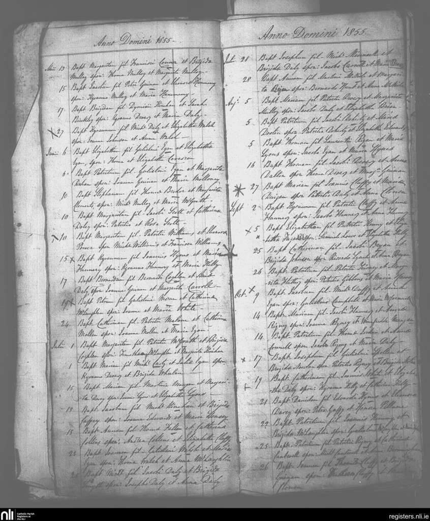 Ballinahown; County of Westmeath, Offaly; Diocese of Ardagh. Baptisms, May 1855 to Oct. 1855