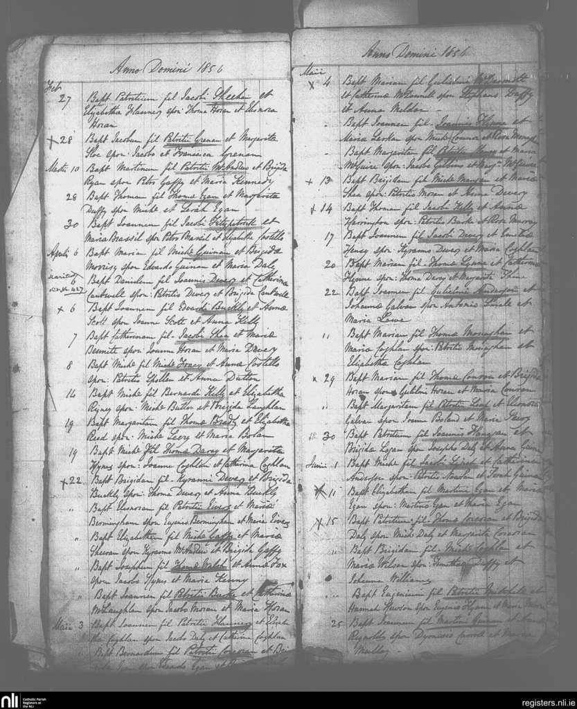 Ballinahown; County of Westmeath, Offaly; Diocese of Ardagh. Baptisms, Feb. 1856 to June 1856
