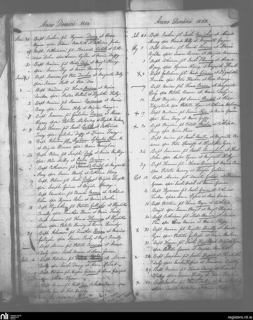 Ballinahown; County of Westmeath, Offaly; Diocese of Ardagh. Baptisms, May 1862 to Sep. 1862