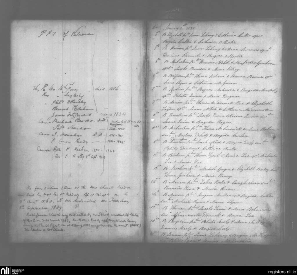Kilronan; County of Roscommon; Diocese of Ardagh. Baptisms, Jan. 1835