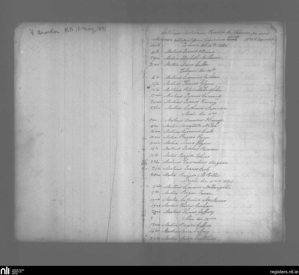 Kilronan; County of Roscommon; Diocese of Ardagh. Deaths, Jan. 1835 to May 1835