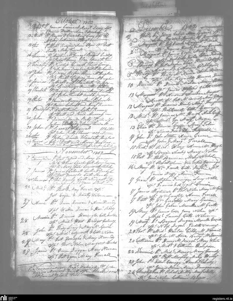 Templemichael; County of Longford; Diocese of Ardagh. Baptisms, Oct. 1802 to Dec. 1802