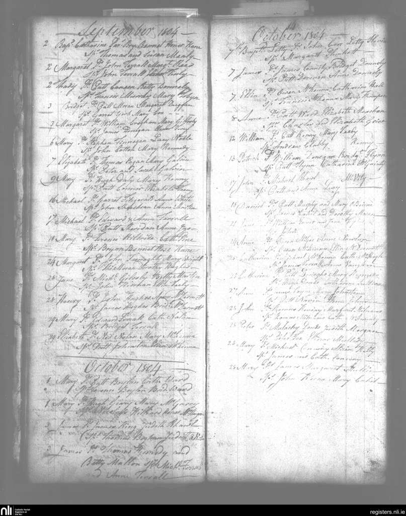 Templemichael; County of Longford; Diocese of Ardagh. Baptisms, Sep. 1804 to Oct. 1804