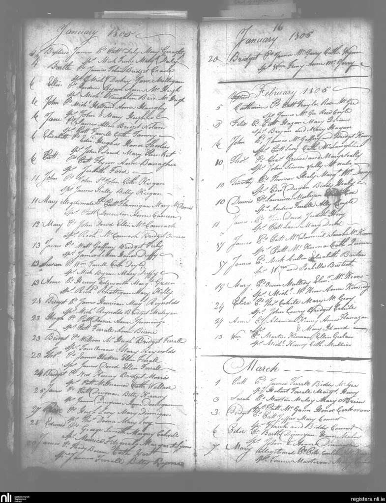 Templemichael; County of Longford; Diocese of Ardagh. Baptisms, Jan. 1805 to Mar. 1805