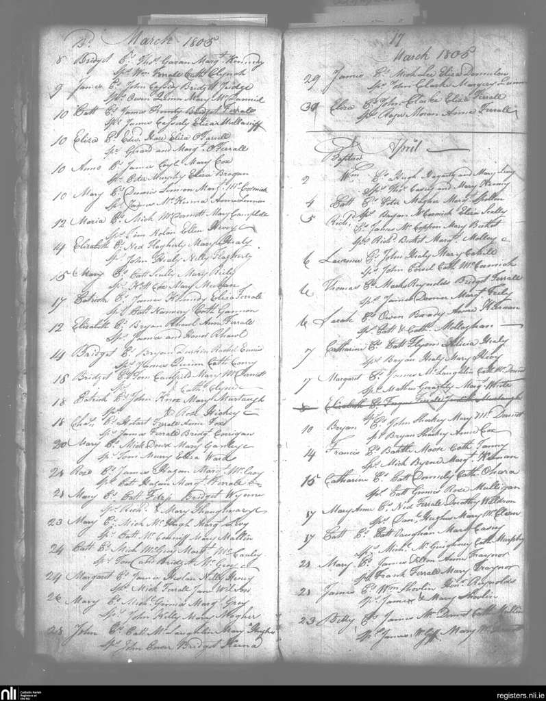 Templemichael; County of Longford; Diocese of Ardagh. Baptisms, Mar. 1805 to Apr. 1805