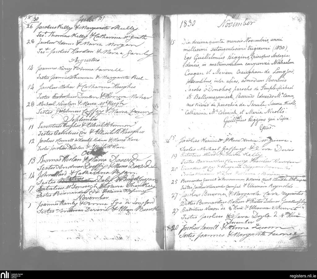 Templemichael; County of Longford; Diocese of Ardagh. Marriages, July 1830 to Dec. 1830