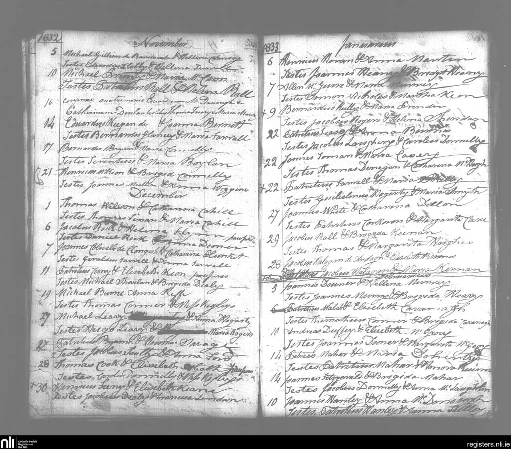 Templemichael; County of Longford; Diocese of Ardagh. Marriages, Nov. 1832 to Feb. 1833