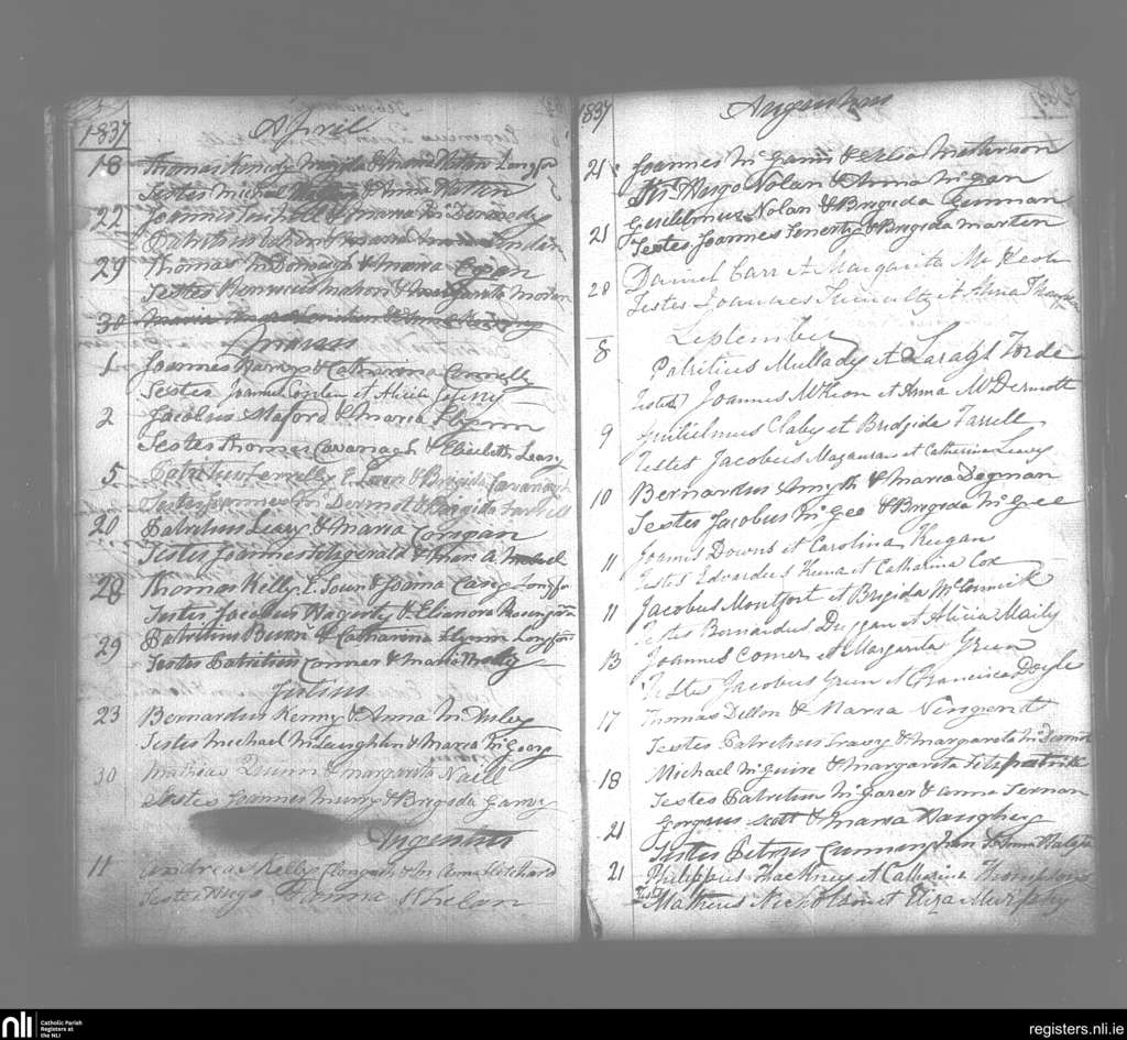 Templemichael; County of Longford; Diocese of Ardagh. Marriages, Apr. 1837 to Sep. 1837