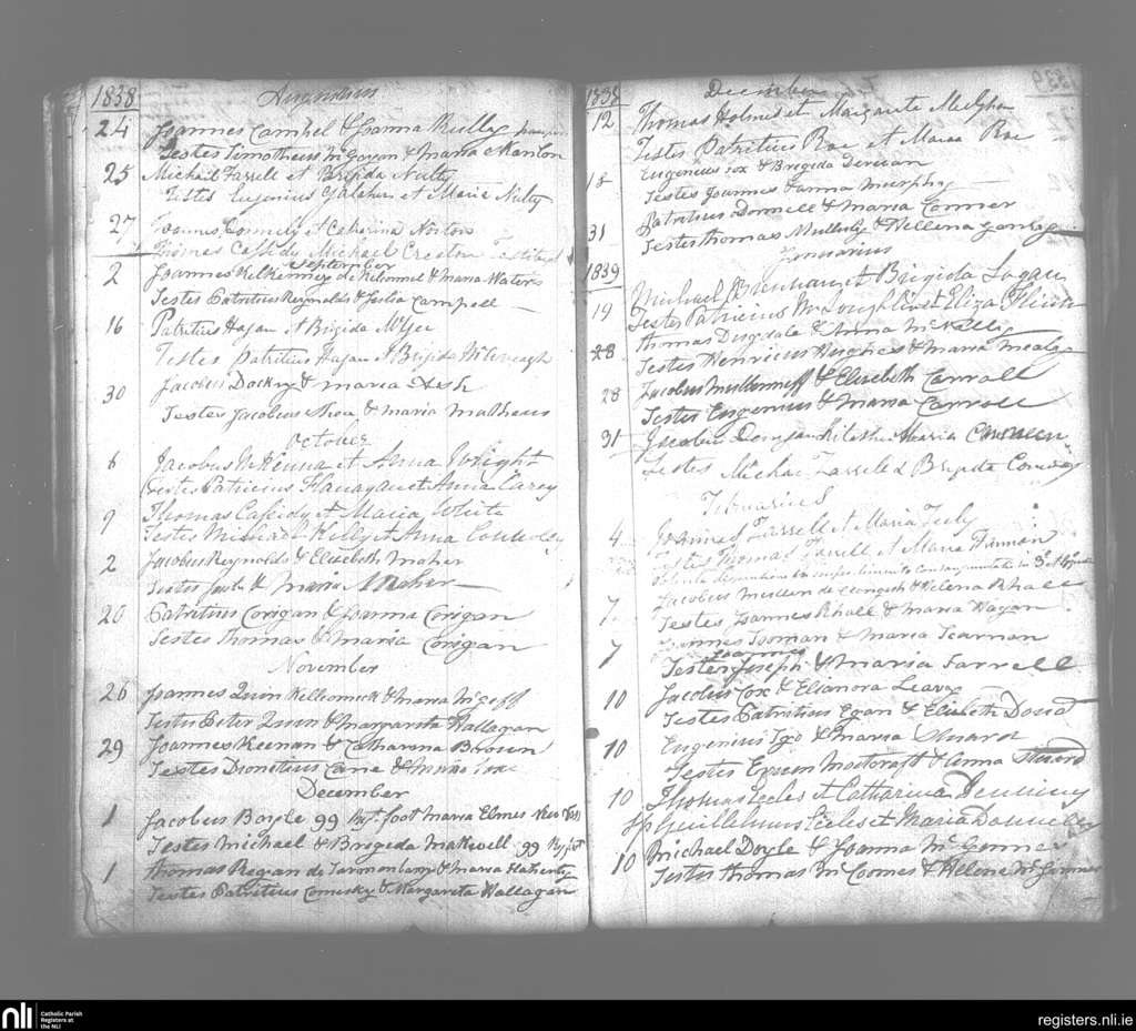 Templemichael; County of Longford; Diocese of Ardagh. Marriages, Aug. 1838 to Feb. 1839