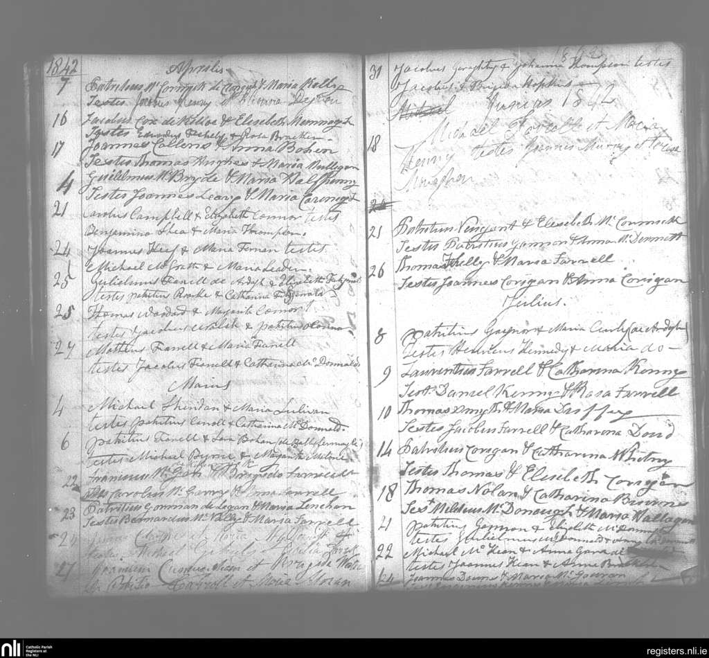 Templemichael; County of Longford; Diocese of Ardagh. Marriages, Apr. 1842 to July 1842