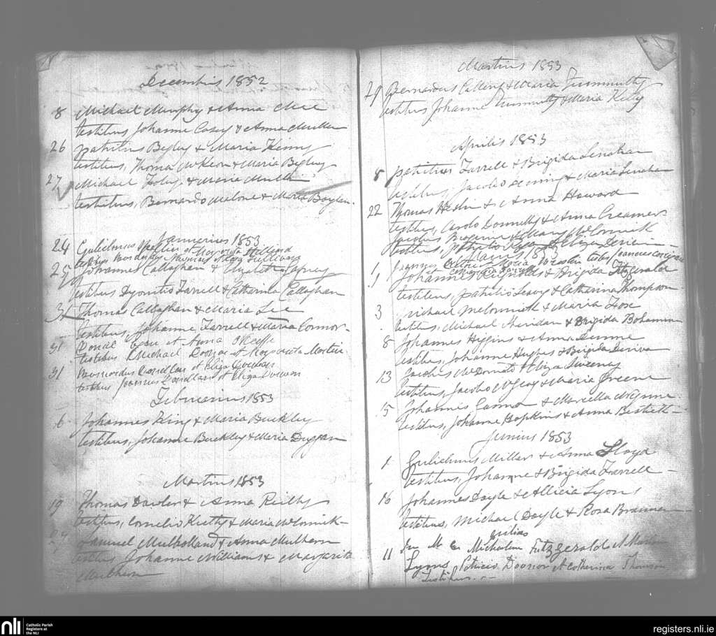 Templemichael; County of Longford; Diocese of Ardagh. Marriages, Dec. 1852 to July 1853