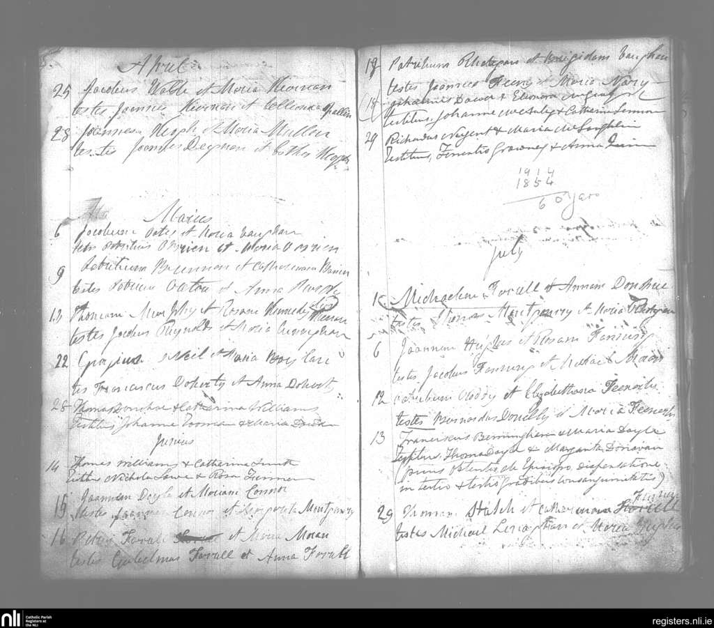 Templemichael; County of Longford; Diocese of Ardagh. Marriages, Apr. 1854 to July 1854
